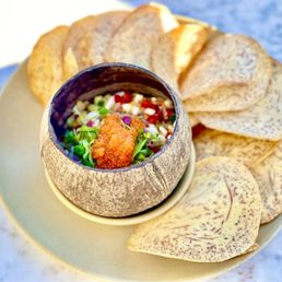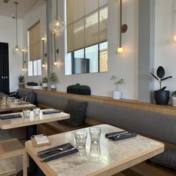 The setting and decor are simple and gorgeous. The waiter was friendly but we had to ask twice if the ricotta stuffed zucchini had egg or not - apparently not, thankfully and they were delicious. Bloody Mary and margarita were good but my Aperol spritz was on point! Coconut ceviche was not only delicious but also so flavorful and the presentation was amazing in the shell and with taro chips. Lobster roll hot was amazing. The poke cones were my least favorite like 1/5 because the cone was soggy and just didn't have a good flavor with the ahi. Overall we will be back. Thanks!
